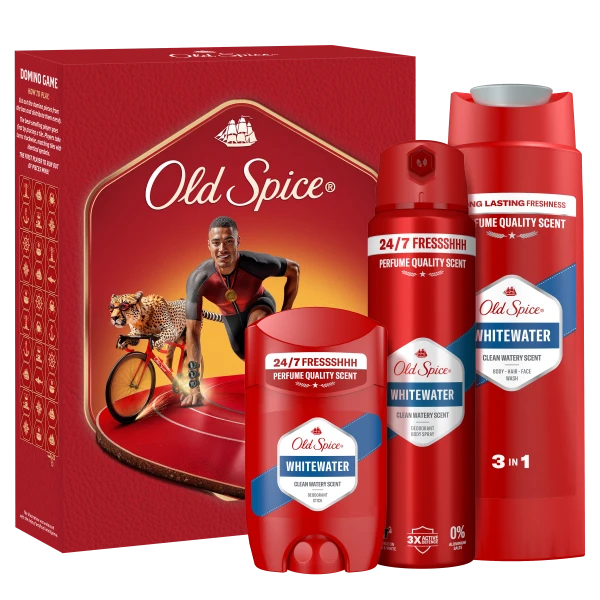 Προτεινόμενη τιμή καταλόγου:OLD SPICE Xmas Promo Sports Fan Σετ για Άνδρες Whitewater Αποσμητικό Στίκ & Αφρόλουτρο & Σαμπουάν,1σετ