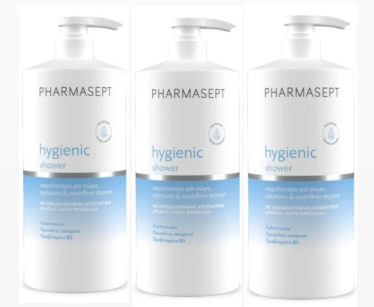 3x Pharmasept Hygienic Shower Αφρόλουτρο με Ήπια Αντισηπτική Δράση για Σώμα, Πρόσωπο & Ευαίσθητη Περιοχή, 3x 1lt