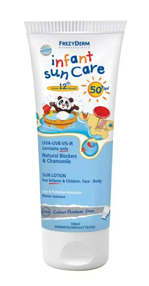 Το αντηλιακό γαλάκτωμα προσώπου και σώματος για νήπια Frezyderm Infant Sun Care SPF50 , προσφέρει αποτελεσματική πολύ υψηλή ηλιοπροστασία μόνο με ανόργανα φίλτρα.
