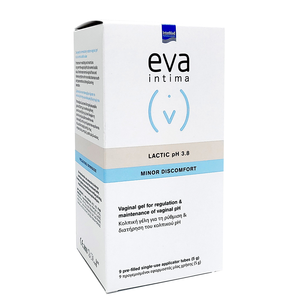 Το Intermed Eva Intima Minor Discomfort Lactic pH 3.8 είναι κολπική γέλη προγεμισμένη σε κολπικούς εφαρμοστές μιας χρήσης, για την επαναφορά του κολπικού pH στην φυσιολογική όξινη τιμή του. Περιέχουν προβιοτικά που παρέχουν ωφέλιμους μικροοργανισμούς, ενώ παράλληλα καταπραύνουν, ενυδατώνουν και επουλώνουν την ευαίσθητη περιοχή χάρη στο εκχύλισμα αλόης.