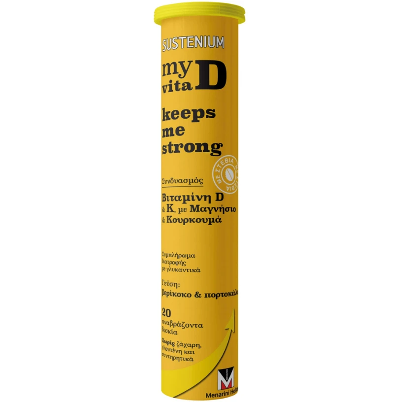 Menarini Sustenium My Vita D Keeps me Strong Συμπλήρωμα Διατροφής με Βιταμίνη D, K, Μαγνήσιο & Κουρκουμά για την Φυσιολογική Κατάσταση των Οστών 20Effer.tabs